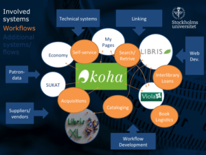 At an abstract level, the strategic direction taken by the library means that we are separating the circulation from cataloging and search services, both of which are provided by LIBRIS. Furthermore, we will separate flows relating to circulation and printed works from electronic resources and this, by extension, means separating circulation and Link Resolver/Electronic Resource Management (ERM). As a consequence, Stockholm University Library has no need for a Next Generation Library Management System, or even a traditional Integrated Library System (ILS) as such.