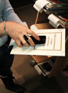 The chosen orders are downloaded as a file to a smartphone. The information in the phone contains all the data needed to find the book. The smartphone can read the barcode or RFID-tag in the book and save that information.