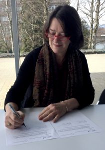 Images: Franciska de Jong, signing a Memorandum of Understanding between LIBER and CLARIN-ERIC. Image by LIBER, CC BY (top). Laurent Romary, Director of DARIAH-EU, signing a Memorandum of Understanding with LIBER. Image by LIBER, CC BY (bottom).
