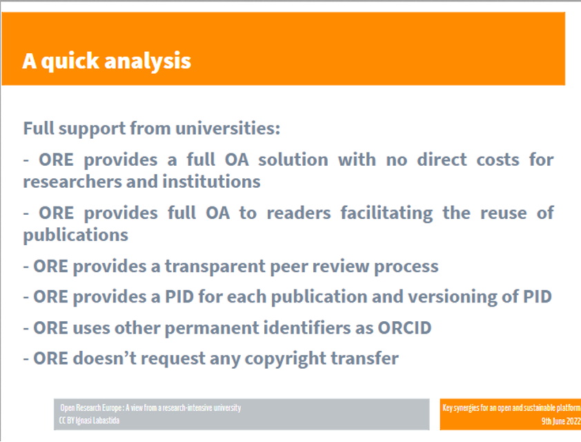 Moreover, Ignasi Labastida highlighted that university libraries have always been the stronghold of Open Access and can collect and assess feedback from researchers and can address the questions and concerns about publication at ORE.